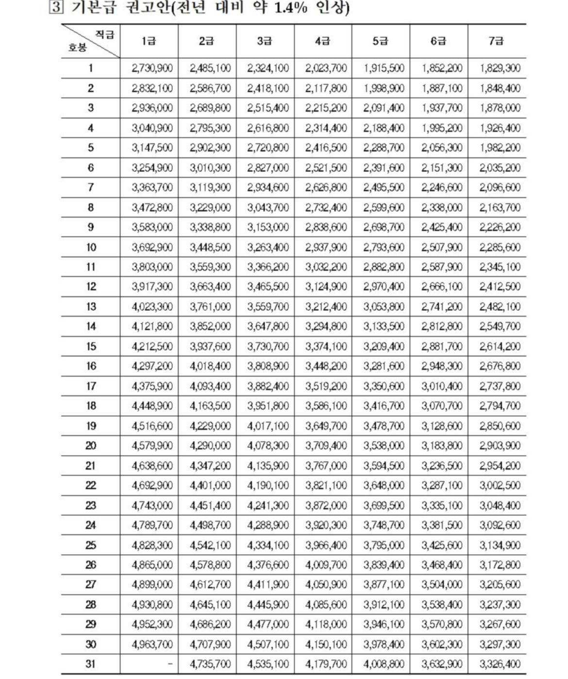 아래는 “청소년 수련시설 공공기관 급수별 임금표”
